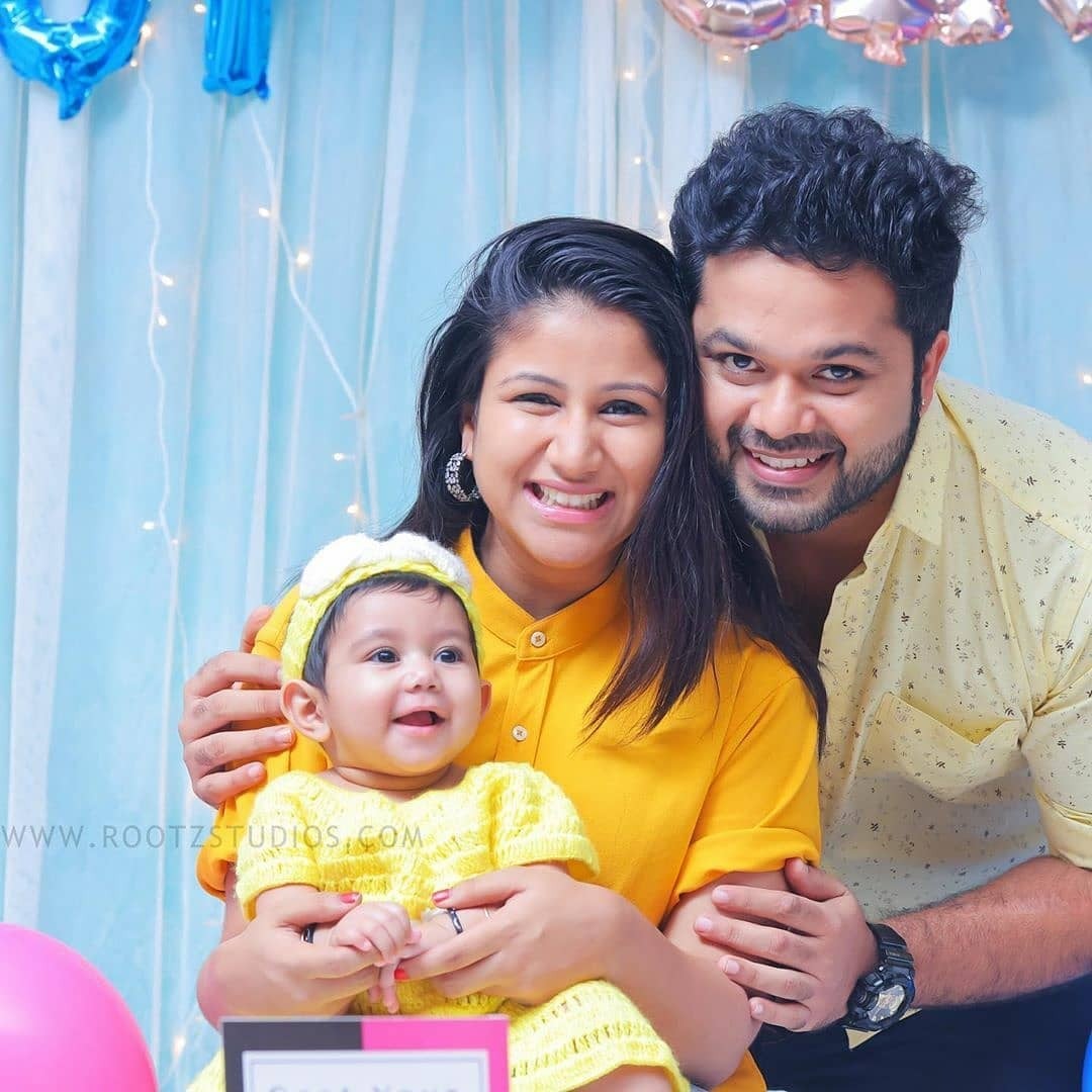 She is from a normal middle-class family her younger sister is Janani Manasa, and her husband’s name is Sanjeev Karthik actor. Other than this information about her father, mother, and other relative is not available.